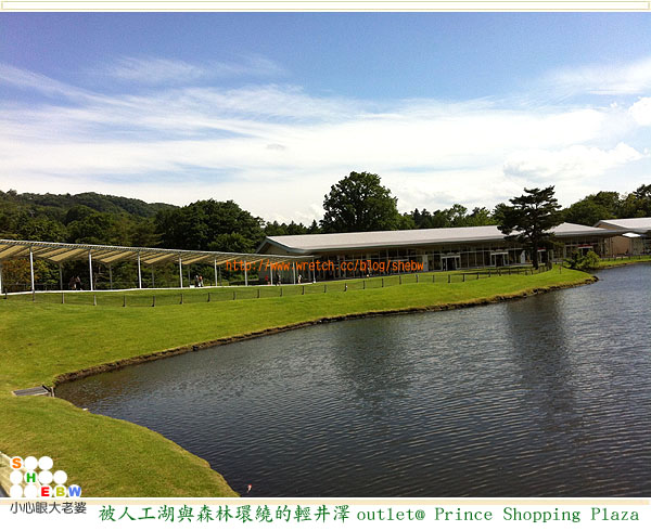隸屬於王子飯店隸屬的Prince Shopphing Plaza,這是大家所稱的輕井澤outlet,這應該是全日本我最喜愛的outlet了,因為整個outlet結合自然美景,中間有一個美麗的人工湖、還有大片美麗的綠草皮,周圍更是被森林綠樹環繞,整個outlet綠草如茵、景色怡人,只逛不買,也是一種享受