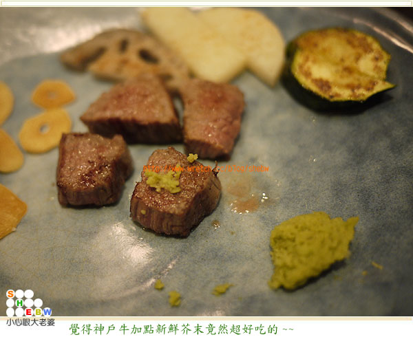 除了神戶牛之外,我的盤子上又出現了日本和牛,不過,這真的不能一起點,因為原本以為日本和牛就超好吃了,沒想到,先吃了神戶牛之後,在吃日本和牛,反而覺得日本和牛有點容易膩口,神戶牛才是我心中的NO.1啦,真是胃口被養壞了呀,哈哈