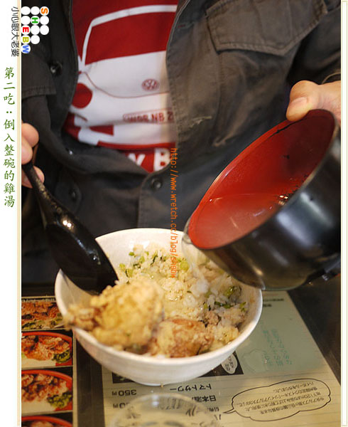 天氣很冷的時候,店家建議,一上桌火速把熱雞湯倒入丼飯中,才暖胃呀~~