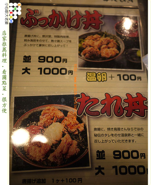 座位旁邊就貼著ぶっかけ丼的吃法介紹,有炸雞飯三吃,也有天氣很冷的時候的吃法