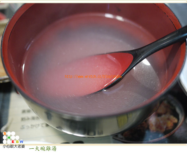 吃幾口之後,來嘗試第二吃吧,把這一大碗熱騰騰的雞湯,倒入吧~~