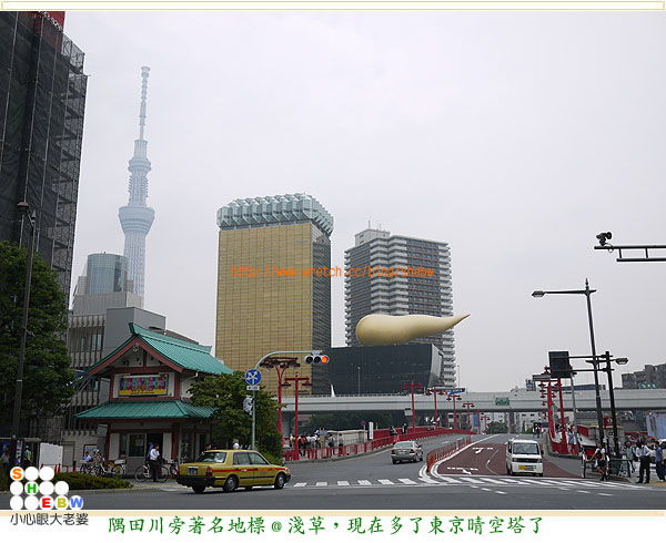 從地鐵站一冒出來,就看到這個屹立不搖的淺草隅田川地標之一,我跟痞子互看一眼,會心一笑,因為我們第一次來東京,是九年前來的,當時從這裡搭著隅田川的水上巴士,從這裡坐到台場遊河,現在想起來,竟然是九年前的事了,歲月催人老呀