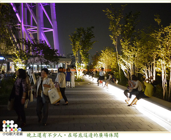 夜幕低垂、華燈初上,有燈光裝飾的東京晴空塔比白天柔美多了,我比較喜歡夜晚的景