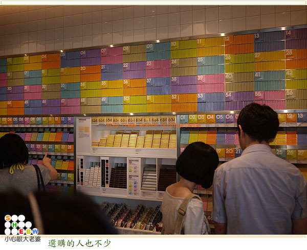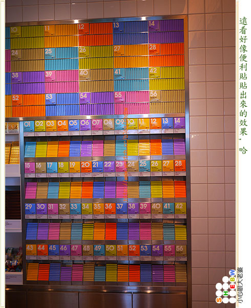 還頗像小規模色票的感覺,也好像是用大量便利貼貼出來的一片牆,原來這一塊塊都是精選的巧克力呀~~