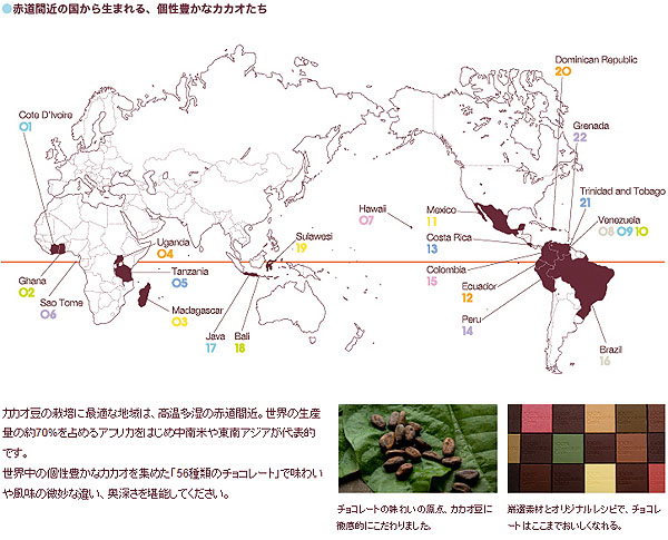 原來這1~~56號的巧克力,是代表56個巧克力的產地,真是講究呀~~