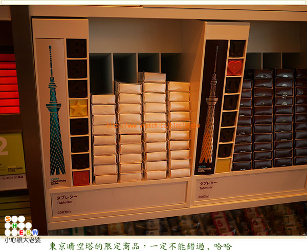 東京晴空塔的必逛店家實在是太多了,每一間店都好有特色,也將原本的商品配合東京晴空塔的主題,又再次創造出更多、更可愛、更有紀念性的商品,這一篇要來介紹一下本店位於銀座附近的京橋站100% chocolate cafe,這是日本歷史悠久meji明治製菓的巧克力專賣店,在東京晴空塔Solamachi商場的四樓開設了第一間分店,名字同樣為100% chocolate cafe,巧克力商品非常精美,每一款設計都會讓人眼睛為之一亮呀~~~![]()