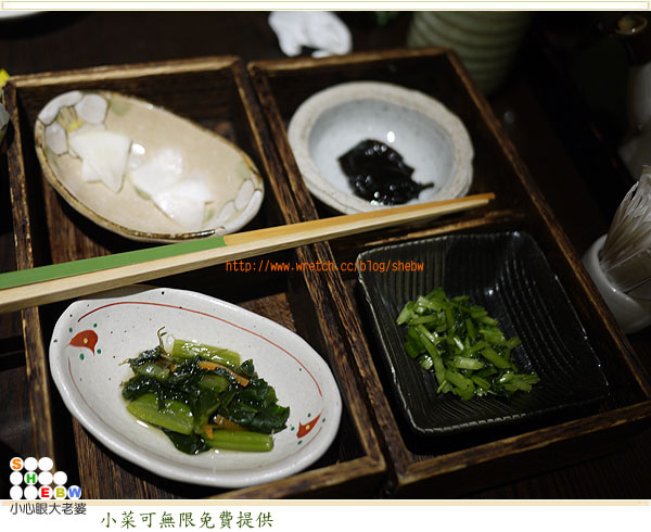 匠庵的小菜可以無限續用,當天的小菜有醃蘿蔔、醃製青菜和涼拌青菜等,那個蘿蔔超脆的,還好可以無限續用