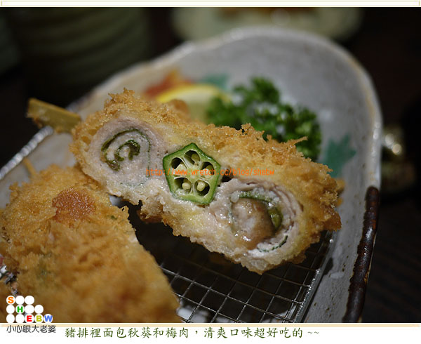 這個炸物裡面有包梅肉和秋葵,秋葵炸的超好的,一咬下去還有點脆脆的口感,中間的子還噴出來,旁邊的梅肉非常解膩,很棒的組合