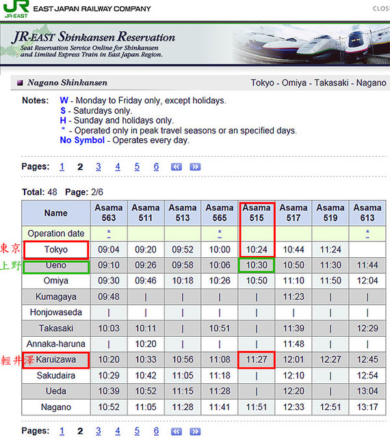 要去輕井澤的話,要買長野新幹線(Nagano Shinkansen),官網上有時刻表,我們是現場購票前才問時間的