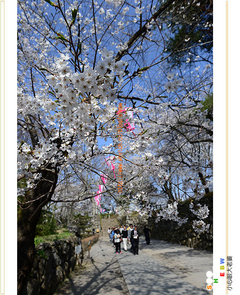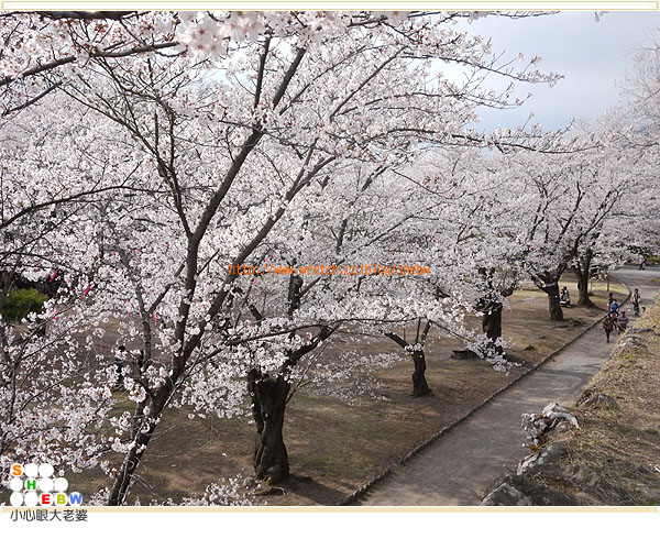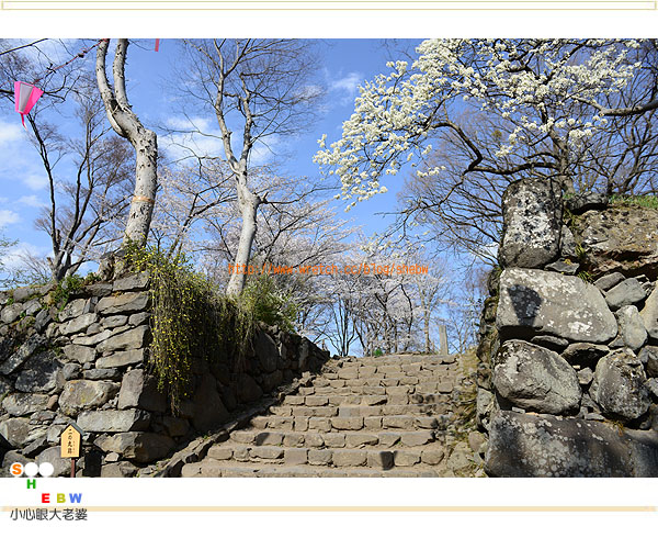 這裡是天守台遺跡,有高高的石階可以爬上去,站在高處欣賞櫻花海。帶小孩的要小心,蠻高的,有點危險喔~~