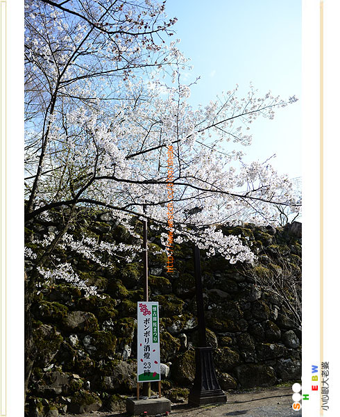 在小諸的手打そば処 水車,邊吃蕎麥麵邊賞櫻之後,散步到「小諸城舊址──懷古園」賞櫻吧~~懷古園是日本的百座名城之一。進入懷古園前,要先買門票,裡面佔地面積相當廣大,除了懐古園遺跡之外,還有藤村記念館、徴古館、小山敬三美術館和動物園,全部參觀的話,料金是日幣500元,如果只要在懷古園裡散步&參觀動物園的話,料金是日幣300元,因為只賞櫻,就買了後者的比較便宜。
