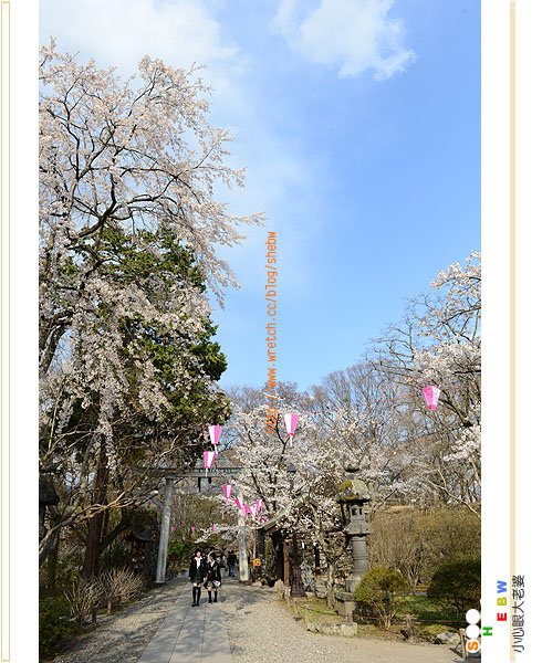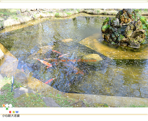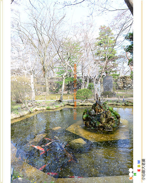 懷古神社前的水池,水面上漂了許多櫻花花瓣,遠看好像下雪一樣,這樣的水池還真是第一次看到,增添多一分詩情畫意的美感