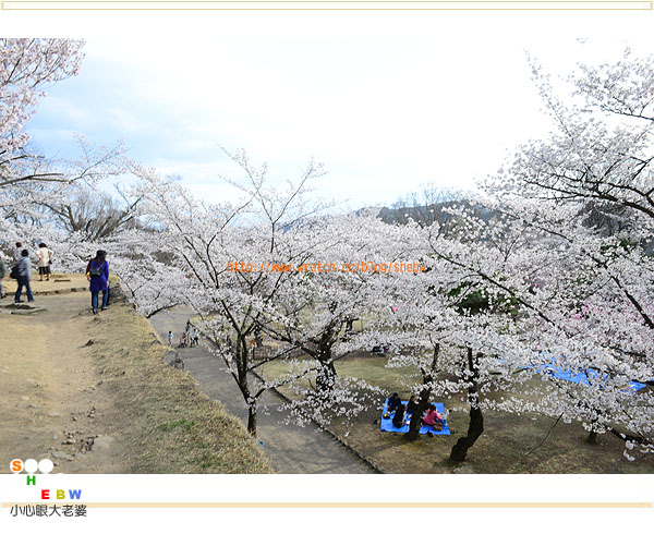 最後,走到懷古神社後面的馬場,就被這一整片的櫻花海給震攝住,櫻花綻放滿點,真是一場美不勝收的櫻花宴~~
