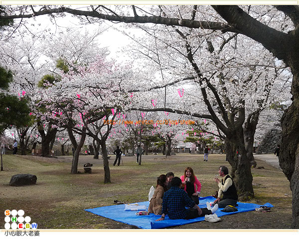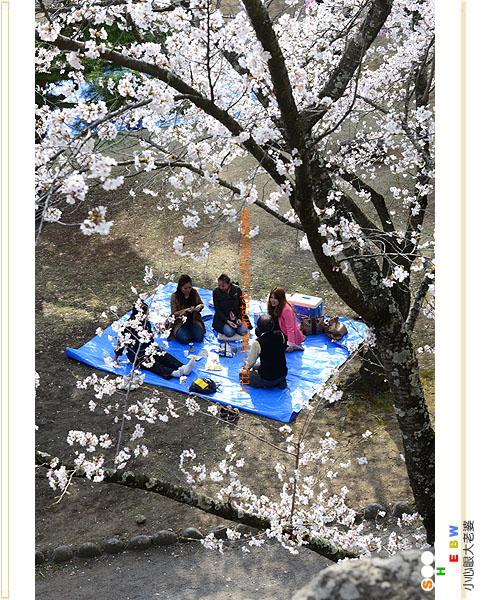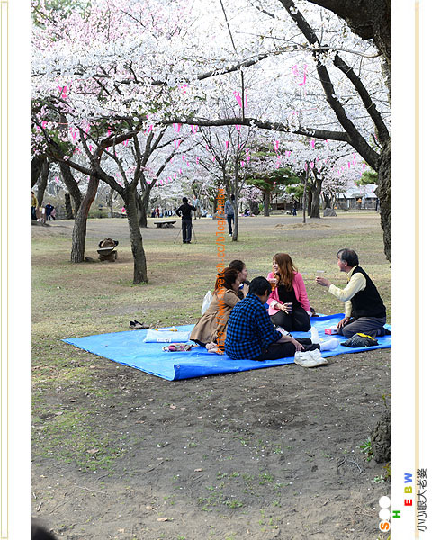 第一次看到日本人賞櫻,天氣蠻涼的,日本人正愜意地在櫻花樹下喝啤酒、聊天~~