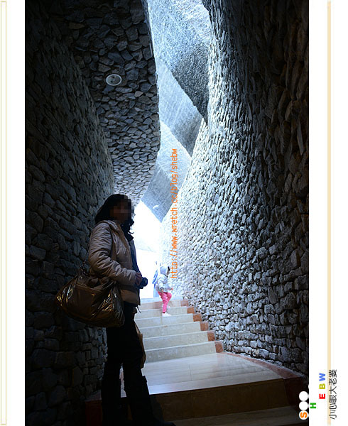 一片片的圓弧石牆,讓小心眼大老婆想到骨牌,好想動手把它推倒,哈哈。不過這麼堅固的教堂,是怎麼樣的不會被摧毀的,這真是太有設計感了