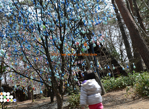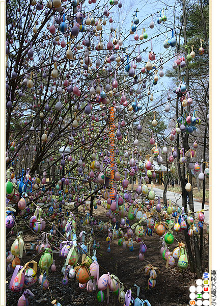 高原教會前方就有兩棵樹,掛滿了五顏六色的復活節彩蛋,同時,也掛滿了許多人的心願。