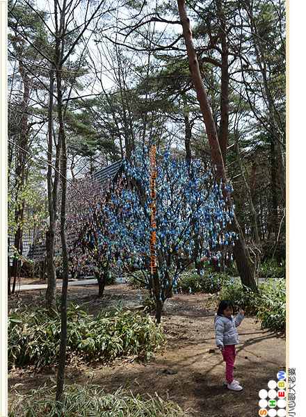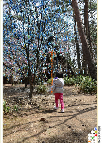 看看三歲小孩站在這彩蛋樹下的比例,就不難想像這樹有多高大了