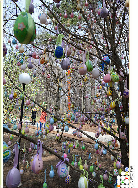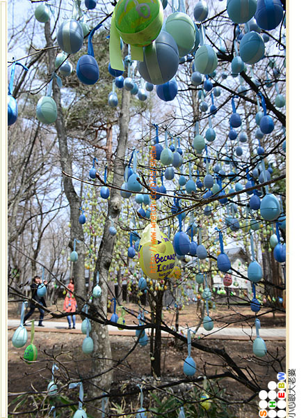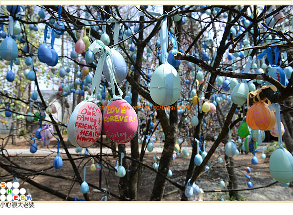 當時拿到教會的DM,好像有說這彩蛋的數量破千顆之類的,驚人的數量造就了眼前這兩棵難得一見的巨大彩蛋樹,這些都是教會提供給民眾自己DIY的彩蛋,可以跟教會領取,DIY彩繪之後,寫上自己的心願就可以掛上去了。