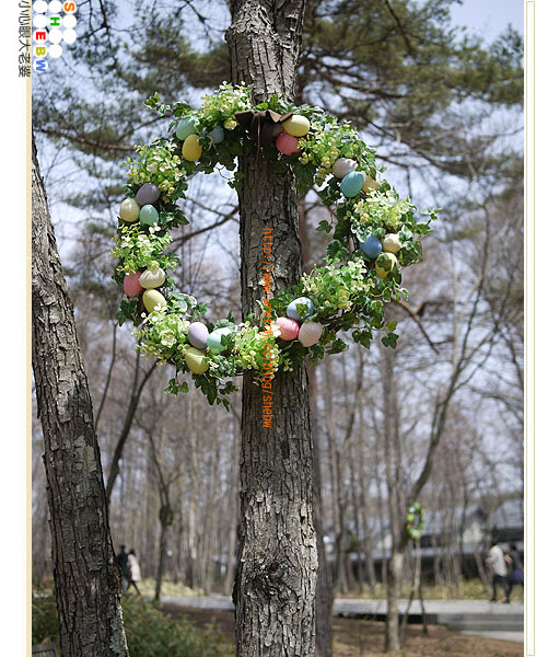 旁邊還有彩蛋裝飾的花圈,也好美喔,拍起來留念
