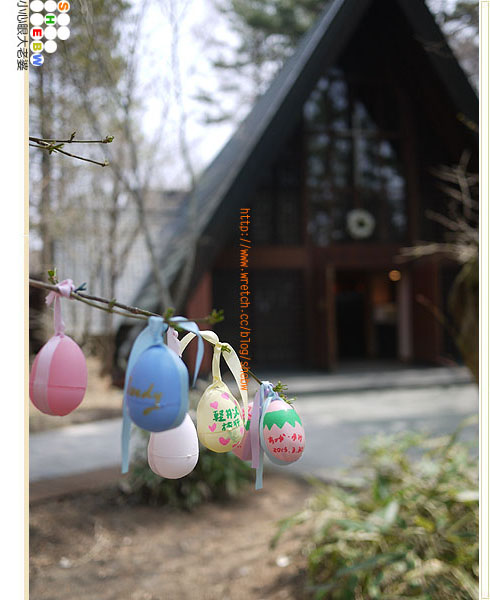 來到中輕井澤星野區,參觀完獨特的石頭蓋的另類教堂,卻是日本的結婚聖地?! 中輕井澤必訪景點--石之教堂 ,穿過森林中的停車場,散步5分鐘就可到達中輕井澤的另一個知名的高原教會,當時去的時候,除了眼前這棟木造的高原教會建築之外,前方的庭院還有五顏六色、驚人的復活節彩蛋裝飾,吸引許多觀光客前來。 [澀谷Hikarie必買伴手禮]京都然花抄院然かすてら,像花朵般的蛋糕~~ 歡迎加入小心眼粉絲團,就可以在facebook接收的美食、旅遊、購物訊息喔